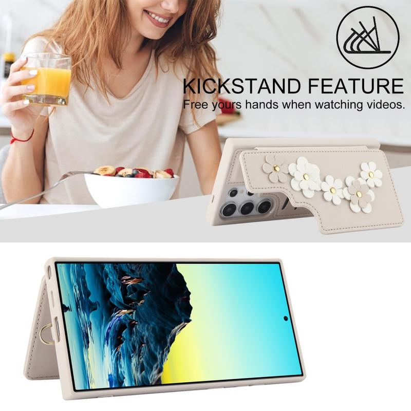 Blomsterdekorationsetui med rem og kortholdere til Samsung Galaxy S24 Ultra