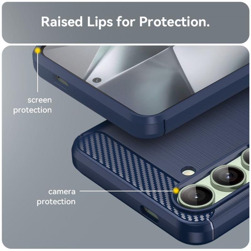Samsung Galaxy S24 FE Børstet TPU Cover - Karbonfiber - Blå
