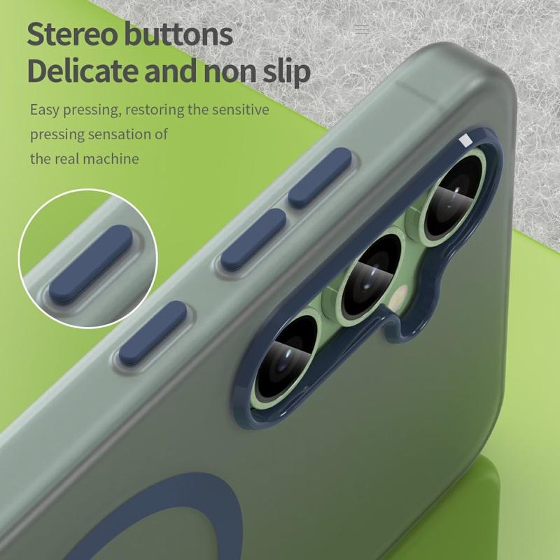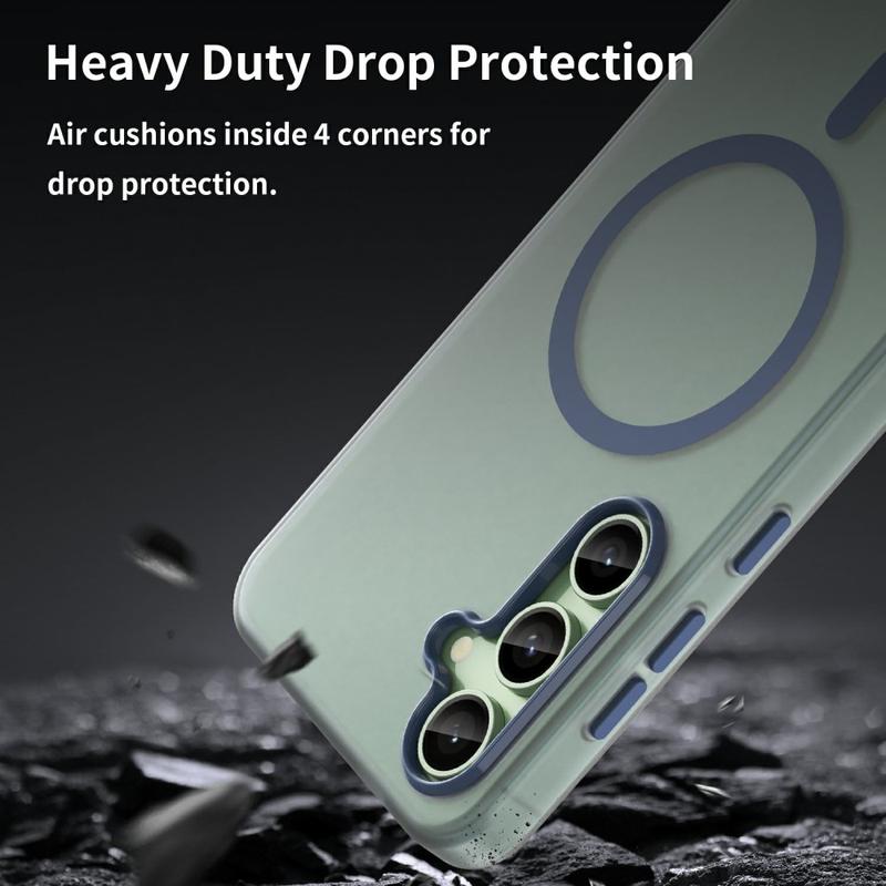 UltraGuard Matte MagSafe Case giver en perfekt balance mellem beskyttelse og slankt design til din Samsung Galaxy S24 FE. Dette slanke letvægtsetui er fremstillet af en holdbar blanding af TPU- og PC-materialer. Den matte, gennemskinnelige finish giver din Samsung Galaxy S24 FE et stilfuldt udseende, samtidig med at der er nem adgang til MagSafe-opladning. Med overlegen beskyttelse mod fald og ridser er det et fremragende valg til daglig brug.