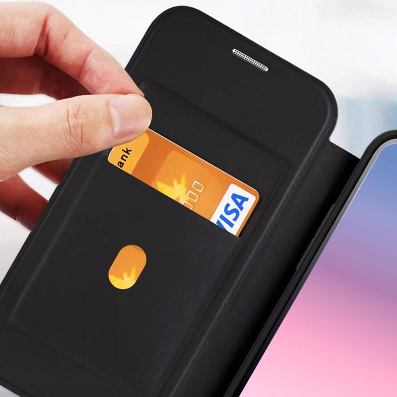 Dette førsteklasses Samsung Galaxy S24+-etui er fremstillet af TPU, akryl og polyuretan i høj kvalitet ved hjælp af en fin proces for at sikre en delikat og udsøgt finish. Det er udstyret med en praktisk kortlomme, så du nemt kan trække kort og bruge dem på farten, og det har en stærk magnet til automatisk lukning, hvilket gør det sikkert og nemt at håndtere ting indeni. Dette Samsung Galaxy S24+-etui giver effektiv beskyttelse mod daglig slitage, ridser, mærker og skrammer, mens den avancerede RFID-blokeringsteknologi i kortlommen sikrer, at dine personlige oplysninger er beskyttet mod tyveri. Derudover er den indbyggede magnetring kompatibel med MagSafe trådløs opladning, hvilket betyder, at du kan oplade din Samsung Galaxy S24+ uden at tage etuiet af.