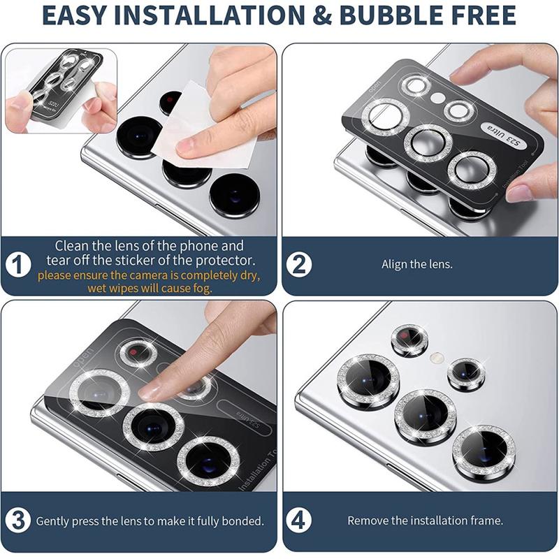 Denne kamerabeskytter er lavet af førsteklasses hærdet glas med 9H i hårdhed, placeret under en holdbar ring af aluminiumslegering, dekoreret med funklende rhinsten. Den er præcist fremstillet til at passe perfekt til kameralinserne på din Samsung Galaxy S24 Ultra med høj gennemsigtighed, så den ikke påvirker kvaliteten af de billeder eller videoer du optager.