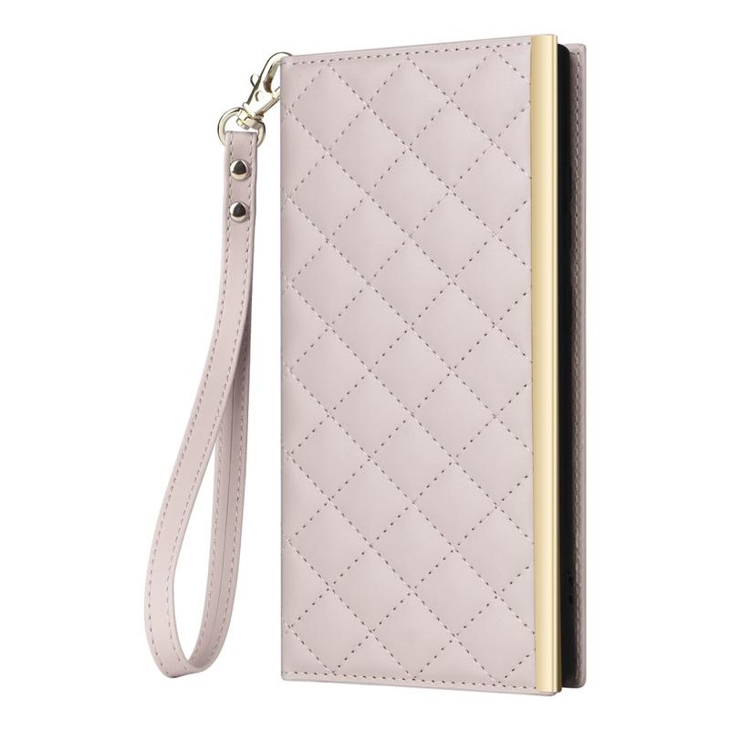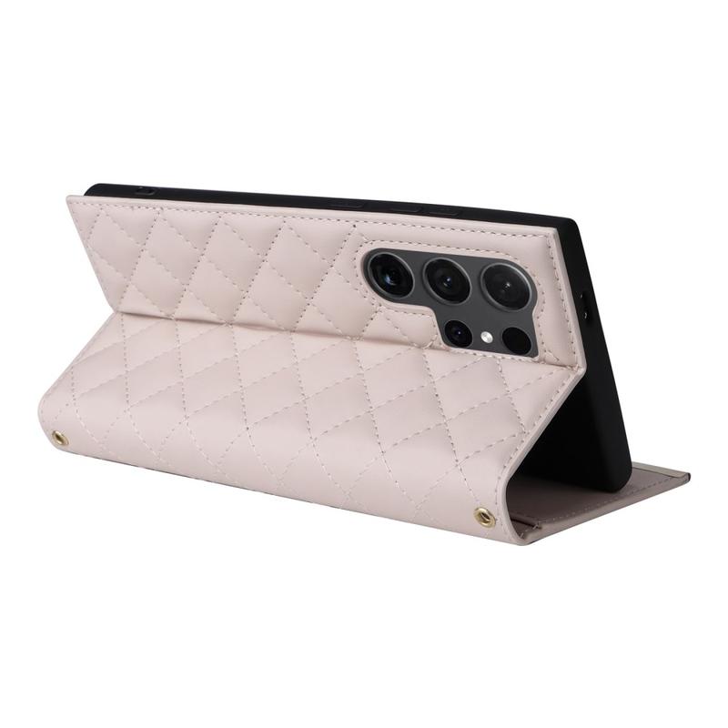 Beskyt din Samsung Galaxy S24 Ultra med dette luksuriøse quiltede pungetui. Konstrueret af TPU-materiale overtrukket med PU-læder, er dette etui ridsefast og anti-fingeraftryk, så din telefon ser stilfuld og elegant ud. Syningerne danner et rombeformet gittermønster, som giver et moderne og smukt touch til etuiet. Den hævede kant på kameraet og skærmen giver effektiv beskyttelse mod ridser, mens de præcise udskæringer giver fuld adgang til alle knapper, porte og andre funktioner. Pungdesignet gør det nemt at opbevare vigtige kort og kontanter, og de medfølgende sugekopper kan bruges som støtte til håndfri brug. Med ekstra beskyttelse mod ridser, stød, fald og daglige skader leveres dette etui også med en skulderrem og håndledsrem for ekstra bekvemmelighed.