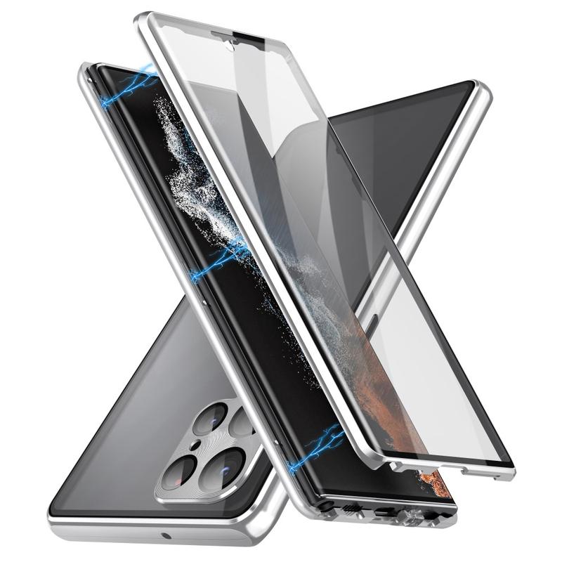 Samsung Galaxy S24 Ultra Magnetisk Cover med Hærdet Glas - Sølv