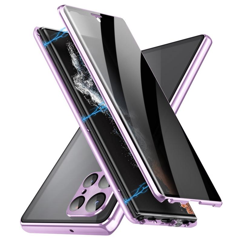 Samsung Galaxy S24 Ultra Magnetisk Cover med Hærdet Glas - Privatliv - Lyselilla