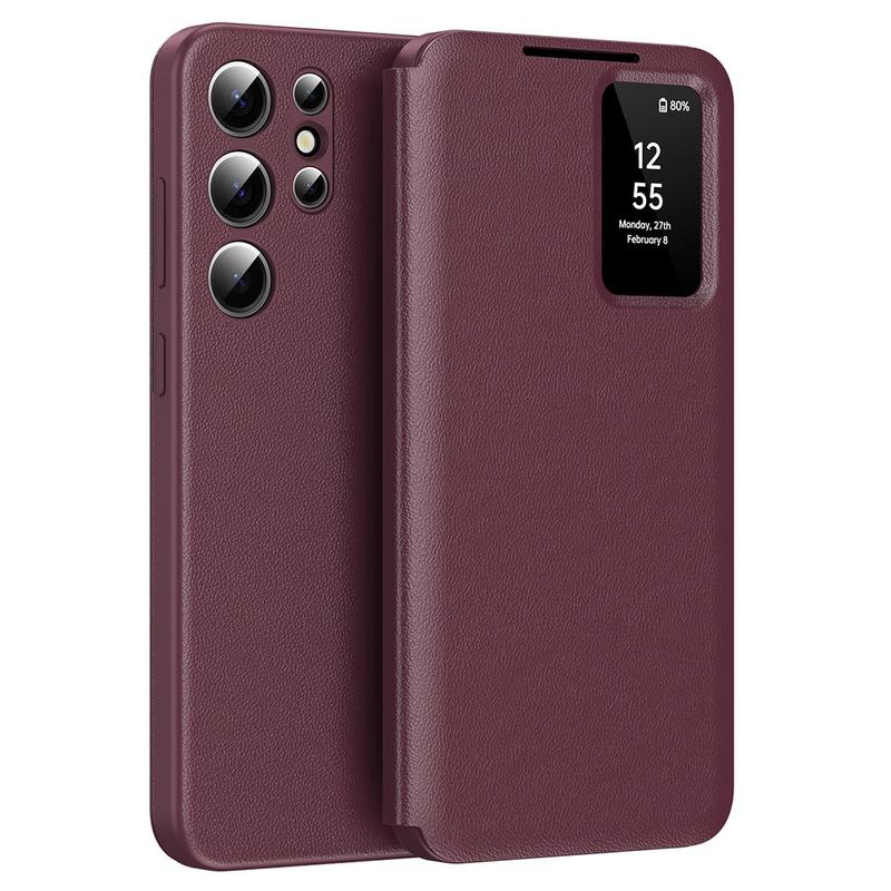 Opgrader din Samsung Galaxy S24 Ultra med dette Premium Leather Flip Cover, der kombinerer luksus, beskyttelse og funktionalitet i et enkelt, elegant tilbehør.