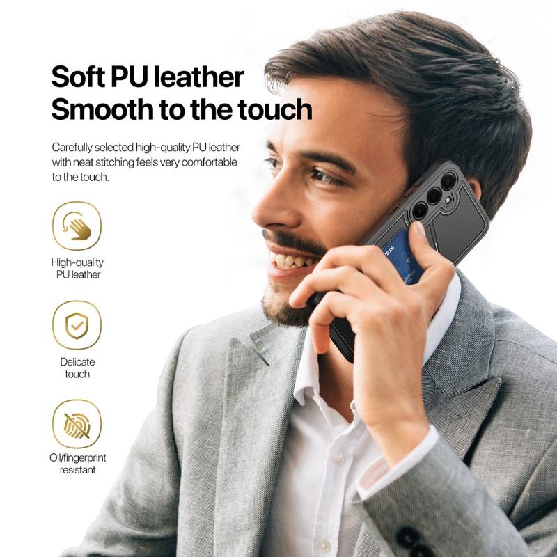 Hold din Samsung Galaxy S25+ sikker og stilfuld med Dux Ducis Rafi II Series Magnetic Case. Dette førsteklasses etui kombinerer en elegant læderfinish med et holdbart TPU-interiør for omfattende beskyttelse. Det er designet til funktionalitet og har indbygget støttefod, magnetisk lukning og kortlommer, hvilket gør det ideelt til brugere, der har brug for både bekvemmelighed og elegance.