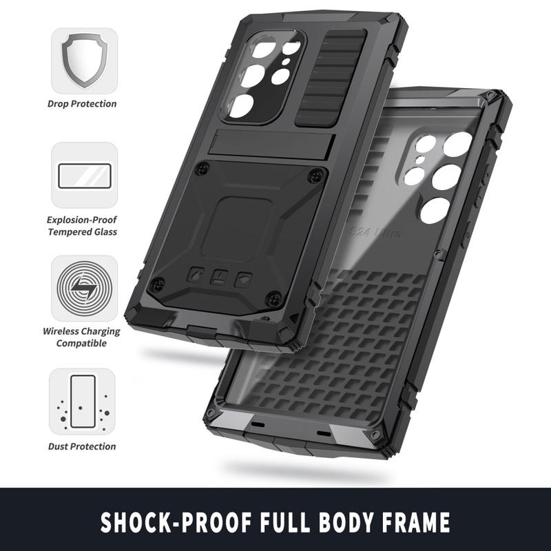 R-Just Premium cover med kickstand og skærmbeskytter i hærdet glas til Samsung Galaxy S25 Ultra