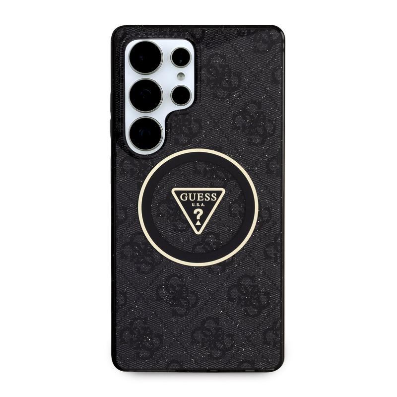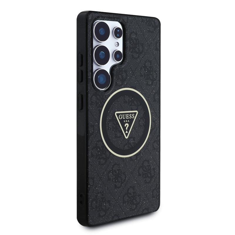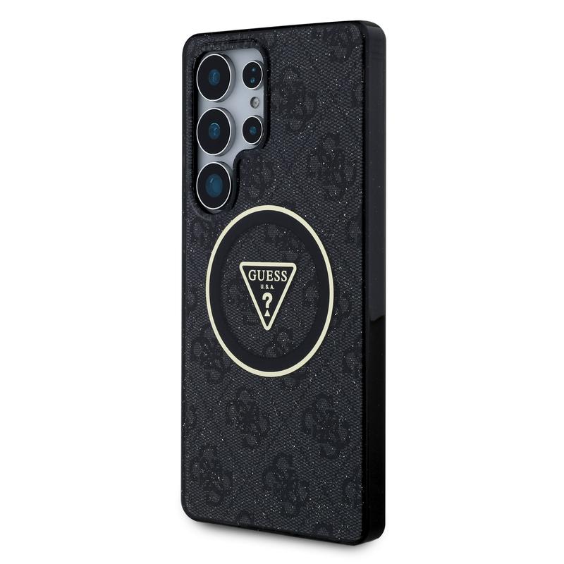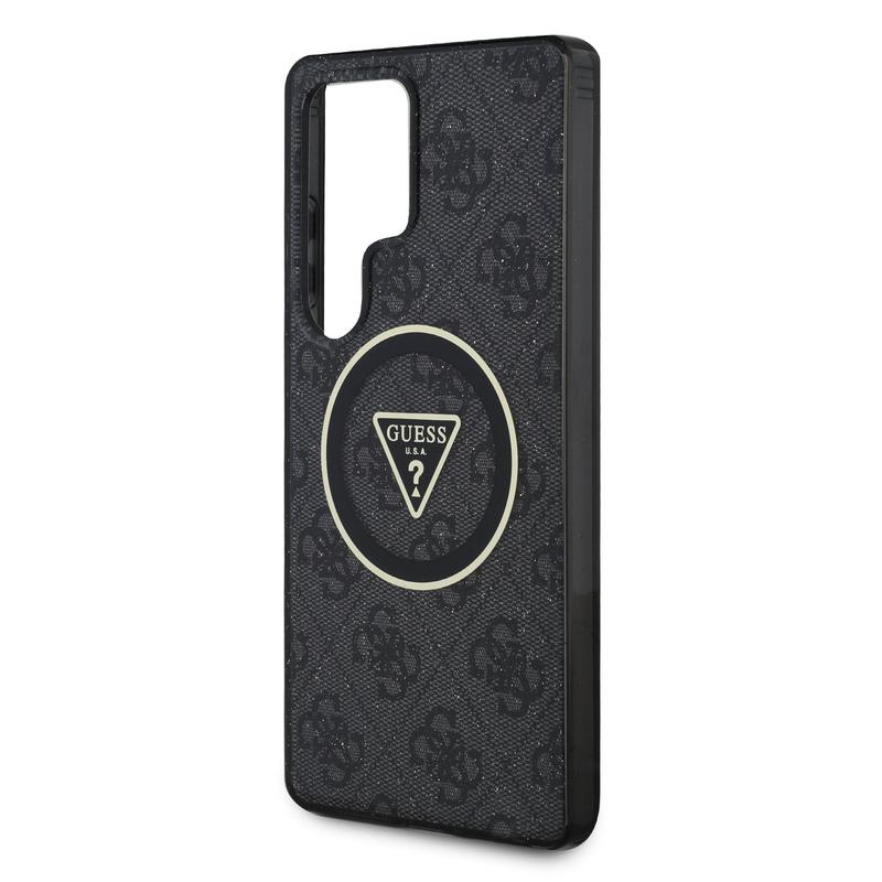 Guess 4G Glitter Triangle Buttons MagSafe Cover til Samsung Galaxy S25 Ultra - Stilfuld beskyttelse med MagSafe-kompatibilitet