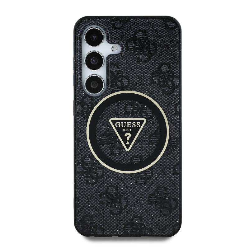 Guess 4G Glitter Triangle Buttons MagSafe Cover til Samsung Galaxy S25+ - Stilfuld beskyttelse med MagSafe-kompatibilitet