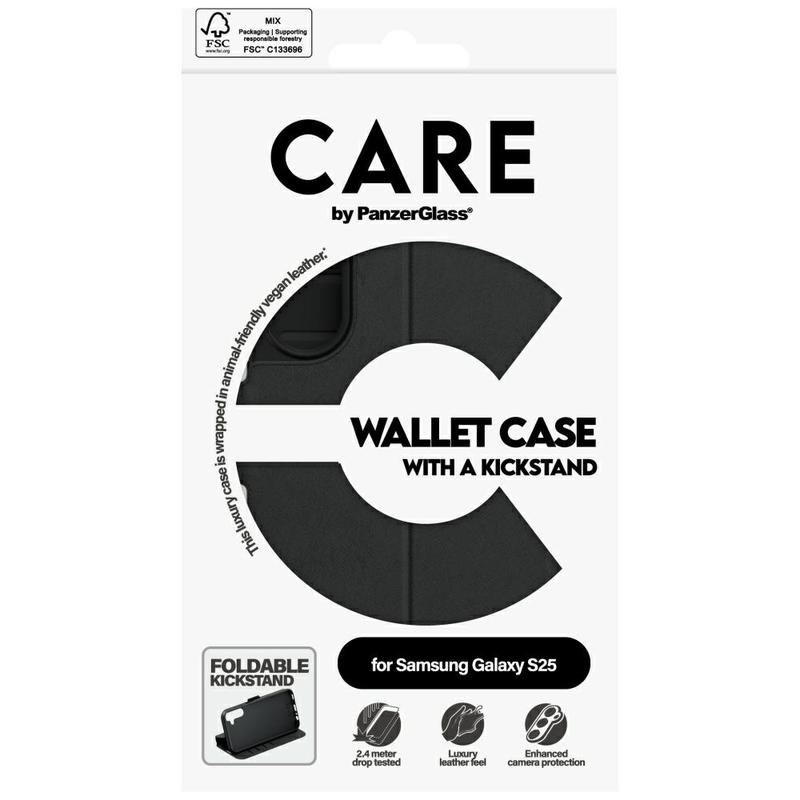 Samsung Galaxy S25 PanzerGlass Care Feature Pung etui med stativ - Sort