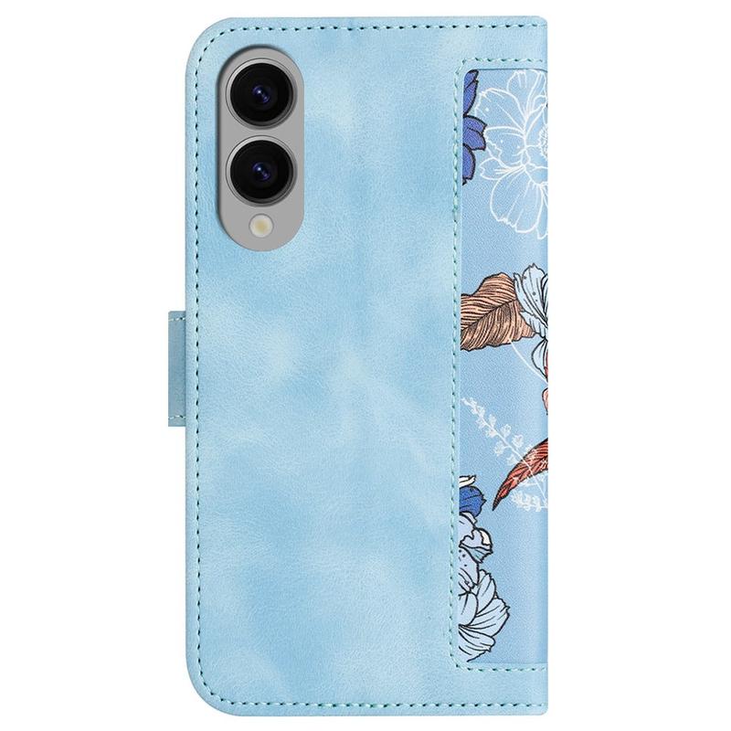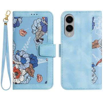 Samsung Galaxy S25 Edge Blomstret pung etui med plads til kort - babyblå