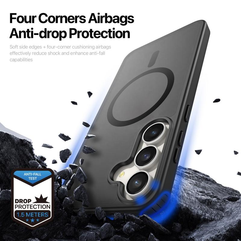 Beskyt din Samsung Galaxy S25 FE med et slankt, mat cover, der kan klikkes direkte på MagSafe-opladere og tilbehør. Yind-serien kombinerer en ridsefast PC-bagplade med stødabsorberende TPU-kanter og en præcisionsjusteret magnetisk ring, hvilket giver kabelfri strøm og allround beskyttelse mod fald uden store lommer.