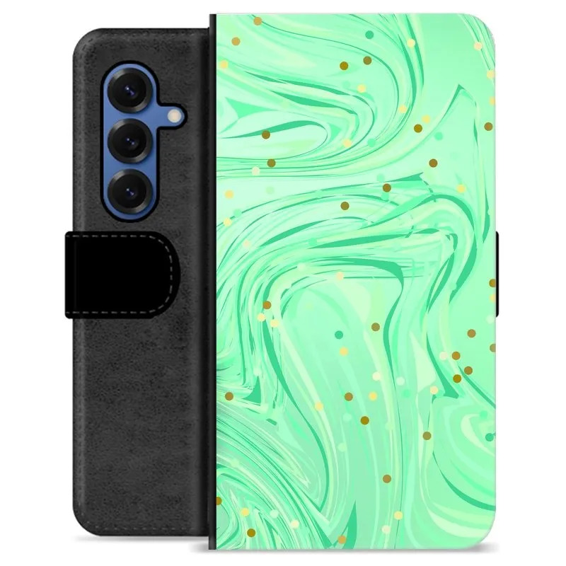 Samsung Galaxy S25 Premium Flip Cover med Pung - Jade Marmor