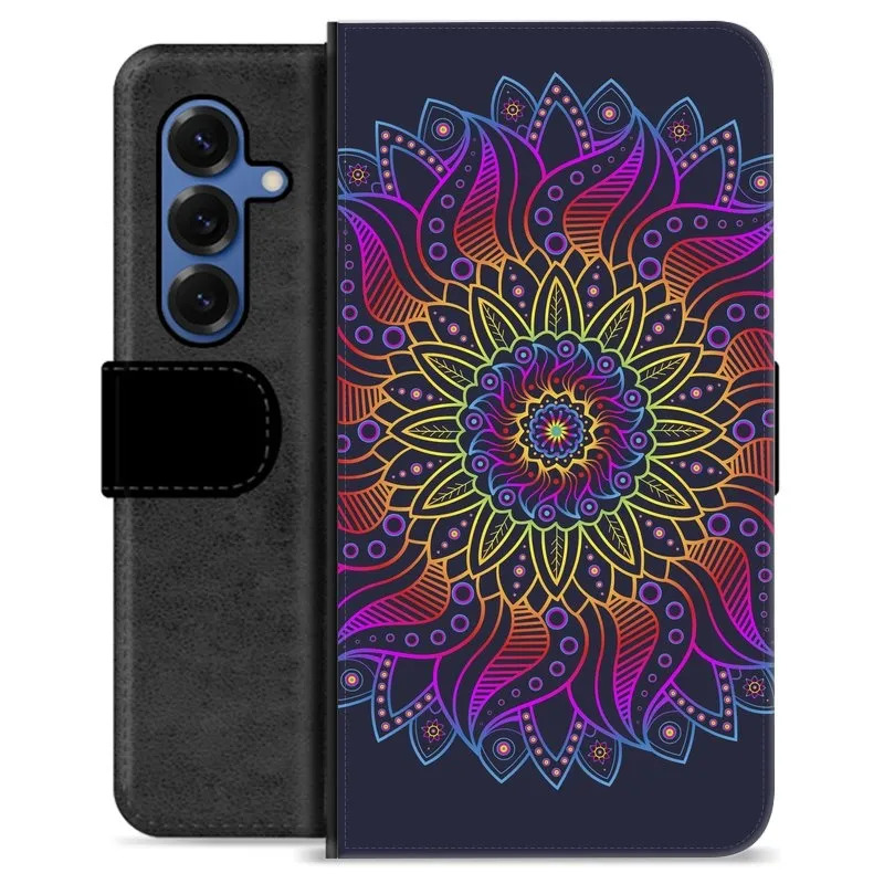 Samsung Galaxy S25 Premium Flip Cover med Pung - Farverig Mandala