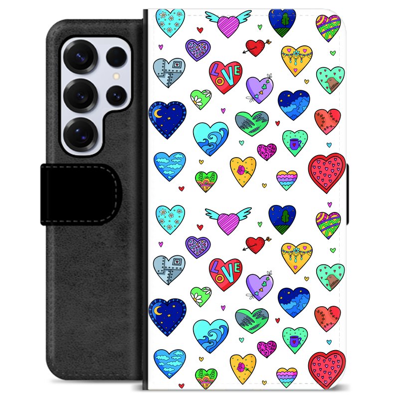 Samsung Galaxy S25 Ultra Premium Flip Cover med Pung - Hjerter