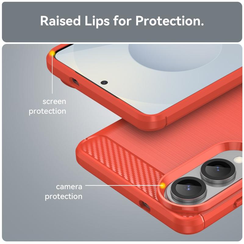 Det børstede TPU-cover beskytter din Samsung Galaxy S25 Edge tilstrækkeligt, mens det giver den en fantastisk stil, takket være dets kulfibermønster på bagsiden. Coveret sikrer også mod overophedning, når du bruger din Samsung Galaxy S25 Edge, med dets varmeafledningsdesign.