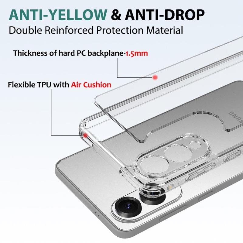 Dette tilbehør anvender en kombination af akryl og TPU for at beskytter din smartphone og holde den i flot stand. Samtidig forhindrer de forstærkede, stødabsorberende hjørner skader fra fald, mens det gennemsigtige design fremviser din Samsung Galaxy S25 Edge flotte design.