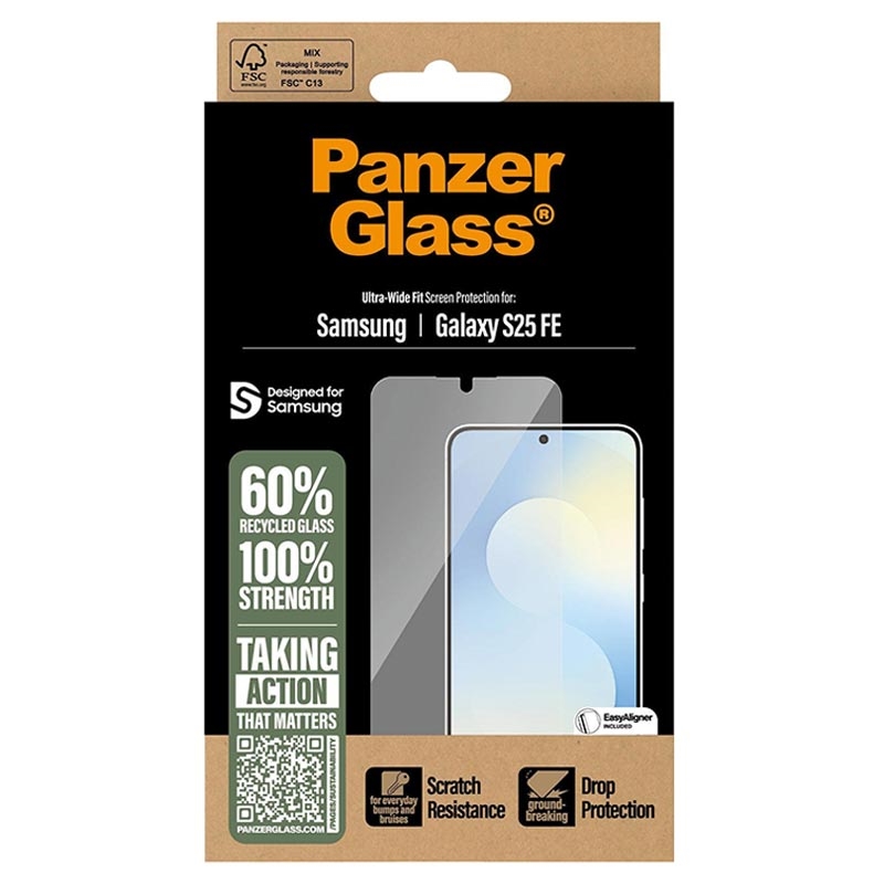 - Ultra-Wide Fit skærmbeskytter i hærdet glas til Samsung Galaxy S25 FE fra PanzerGlass