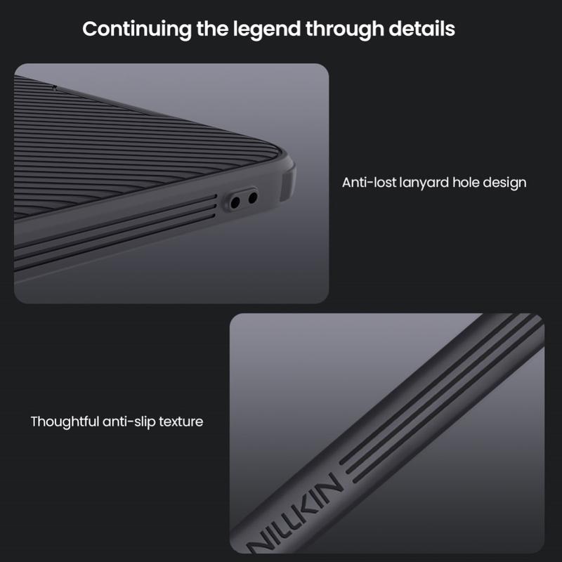 - Dette ekstraordinære Nillkin CamShield Prop hybridcover er lavet af plastik og TPU-materialer