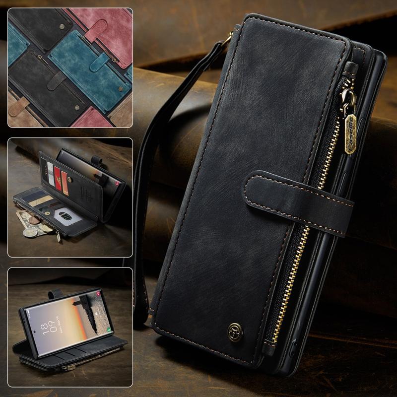 En Caseme C30 multifunktionel pung til Samsung Galaxy S25 Ultra giver en enestående all-around beskyttelse, og et eksklusivt, raffineret design. Dette elegant cover er lavet af førsteklasses polyurethan, forstærket af et stødabsorberende TPU indercover, der slutter sig perfekt omkring din Samsung Galaxy S25 Ultra. Samtidig er Caseme C30 pungen forbedret med adskillige kortholdere, et stort rum til penge indeni, og en lynlåslomme udenpå, som alle er beskyttet af en sikker magnetisk lukning.