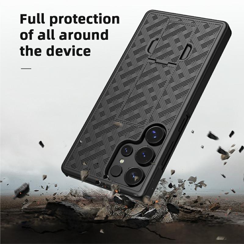 Dette cover gør det muligt for din Samsung Galaxy S25 Ultra at lade dig se film og videoer eller læse uden hænder, takket være dets indbyggede støtteben, udover den medfølgende sikkerhed og beskyttelse. Coveret indeholder også et bæltespænde-design, der kan hjælpe dig med at bære din Samsung Galaxy S25 Ultra, uanset hvor du går. Det glidende design sikrer fuldstændig beskyttelse mod hverdagsskader, uden at forstyrre tilgængeligheden af din enhed.