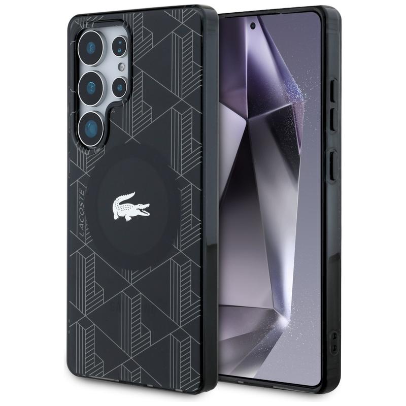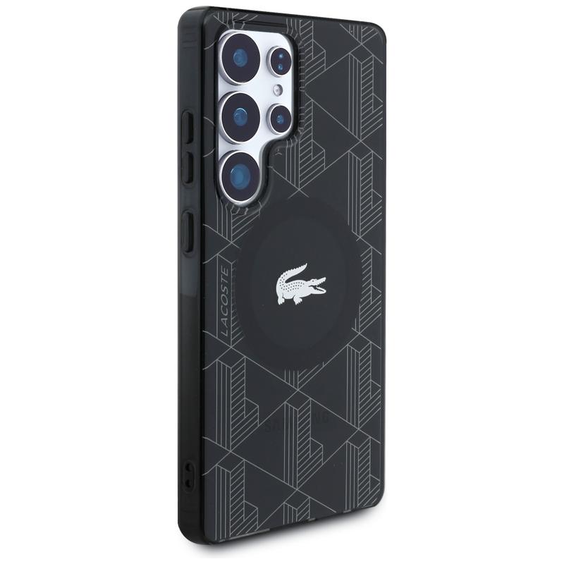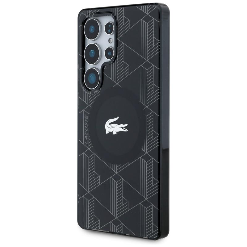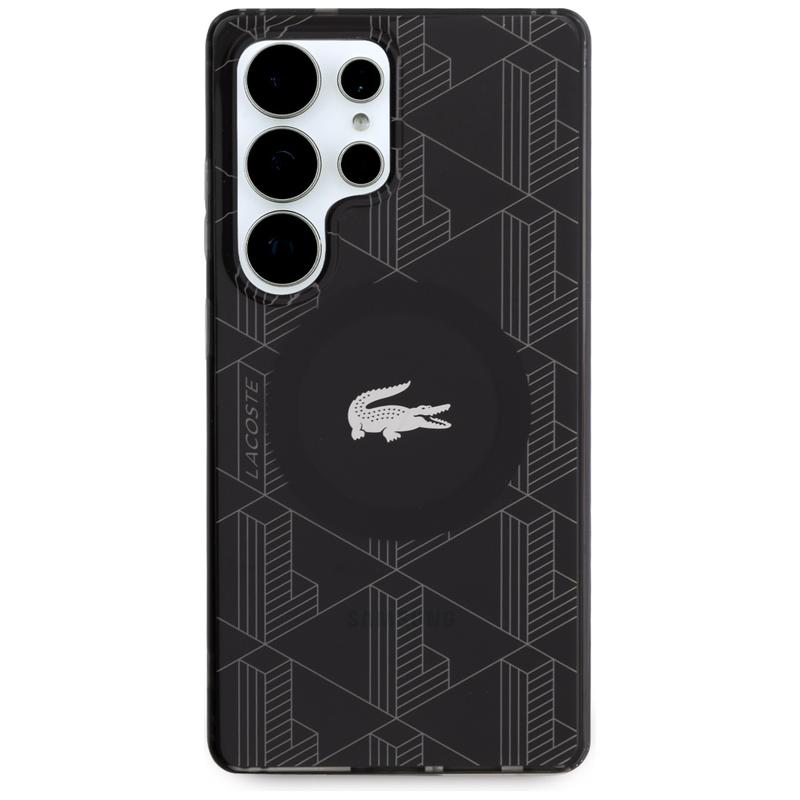 Samsung Galaxy S25 Ultra Lacoste Monogram med Sølv Krokodille Logo Cover - MagSafe-kompatibel - Sort