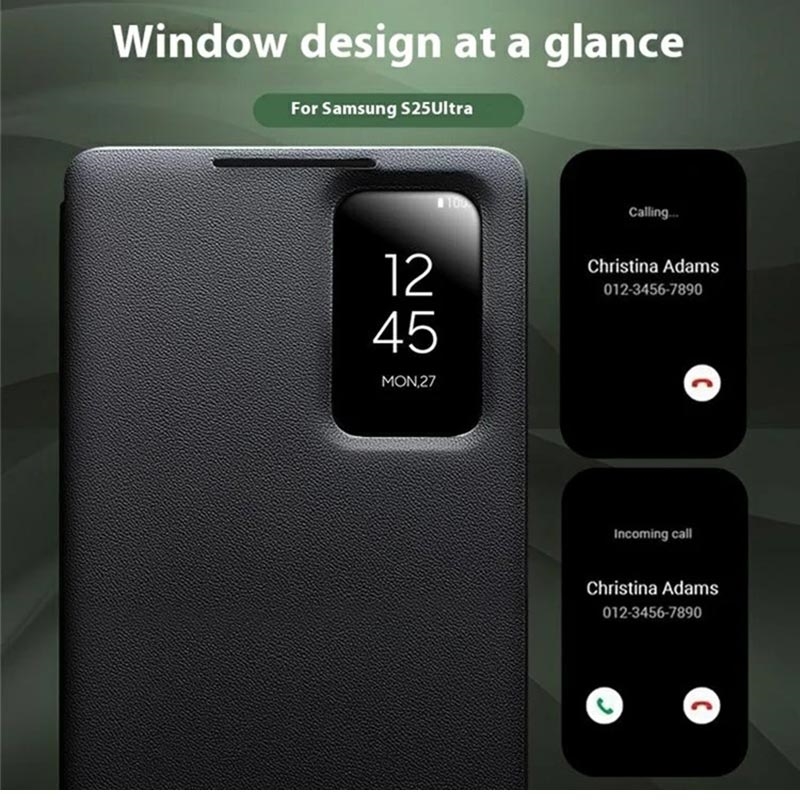 Samsung Galaxy S25 Ultra Smart Clear View Flip etui med kortplads - Sort