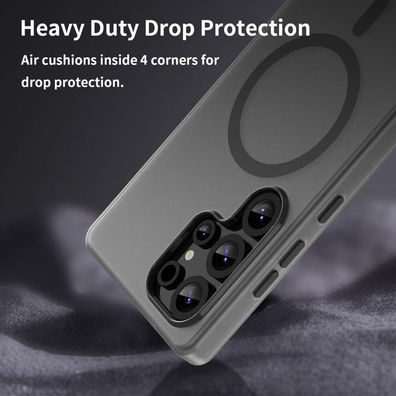 UltraGuard Matte MagSafe Case giver en perfekt balance mellem beskyttelse og slankt design til din Samsung Galaxy S25 Ultra. Dette slanke letvægtsetui er fremstillet af en holdbar blanding af TPU- og PC-materialer. Den matte, gennemskinnelige finish giver din Samsung Galaxy S25 Ultra et stilfuldt udseende, samtidig med at der er nem adgang til MagSafe-opladning. Med overlegen beskyttelse mod fald og ridser er det et fremragende valg til daglig brug.