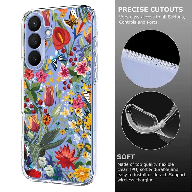 Forvandl din Samsung Galaxy S26 Pro til et håndholdt kunstværk. Floral-udgaven omgiver din telefon med et drømmende lag af lavendelblomster og sarte sommerfugle trykt med high-definition blæk, der ikke falmer. Etuiet er fremstillet af fleksibelt, stødabsorberende TPU og tilpasser sig hver eneste kurve på din enhed, mens de hævede læber beskytter skærmen og kameralinserne mod daglige stød. En mat, smudsafvisende belægning holder designet skarpt og din telefon fri for fingeraftryk, alt sammen uden at blokere for trådløs Qi-opladning.