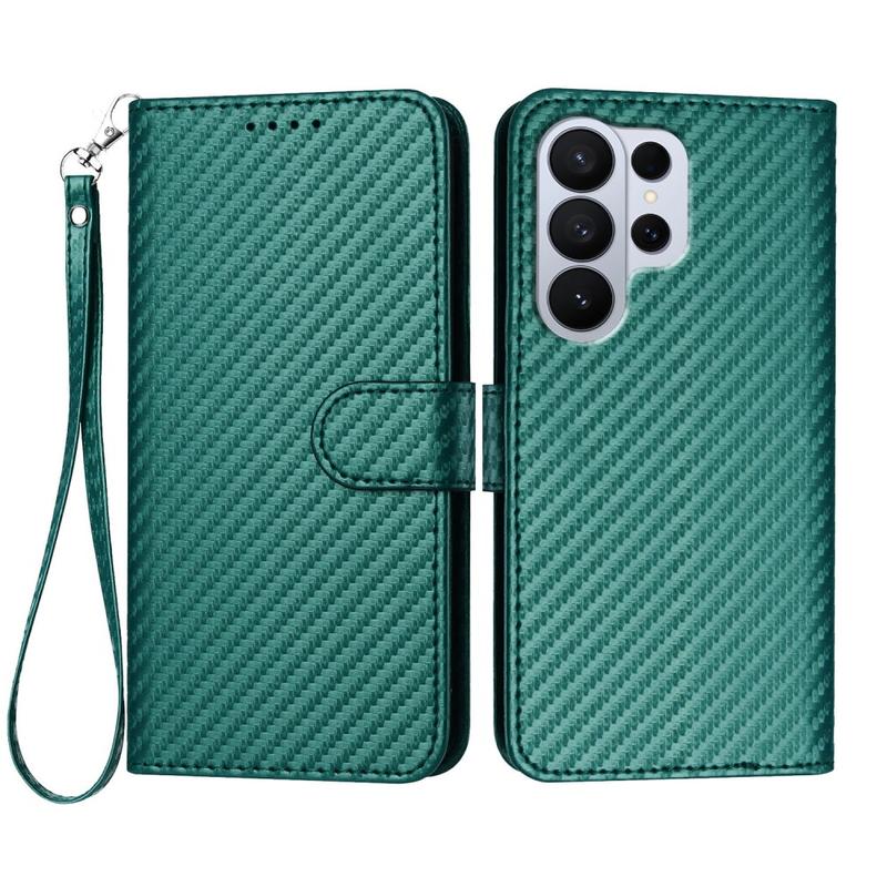 Samsung Galaxy S26 Ultra Premium Wallet-etui med rem - kulfiberstruktur - Kulstofgrøn