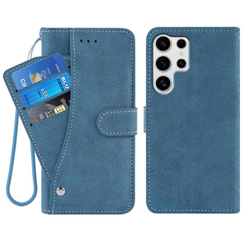 Samsung Galaxy S26 Ultra Elegant retro-pungetui med roterende kortholder - Blå