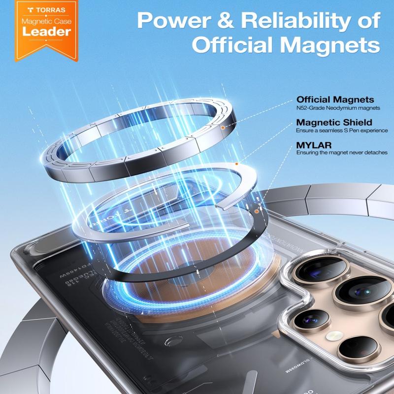 Det magnetiske Torras Ostand L1-etui er fremstillet af en omhyggeligt afbalanceret kombination af TPU, PC og metal, der giver holdbarhed uden at gå på kompromis med stilen. Denne multimaterialekonstruktion beskytter din Samsung Galaxy S26 Ultra mod dagligt slid, samtidig med at den bevarer et slankt, moderne udseende, der føles behageligt i hånden.