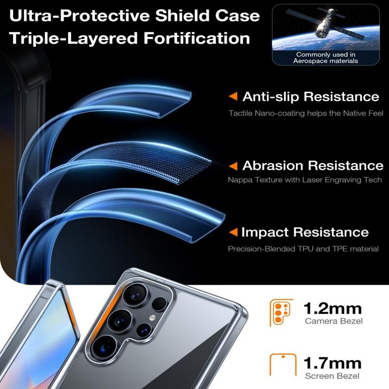 Etuiet er bygget med en intern støddæmpende struktur og en forstærket TPU-kofanger, der hjælper med at reducere kraften ved utilsigtede fald og stød. Integrerede luftpudezoner giver ekstra beskyttelse til daglig brug uden at tilføje unødvendig masse.