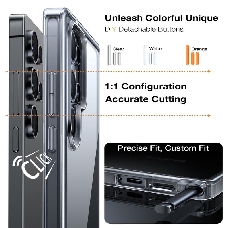 Etuiet indeholder tre farvesæt med udskiftelige knapper, så du kan gøre din Samsung Galaxy S26 Ultras udseende personligt. Du kan nemt udskifte knapperne, så de passer til din stil, dit outfit eller dit humør, og skabe et unikt, tilpasset udseende.