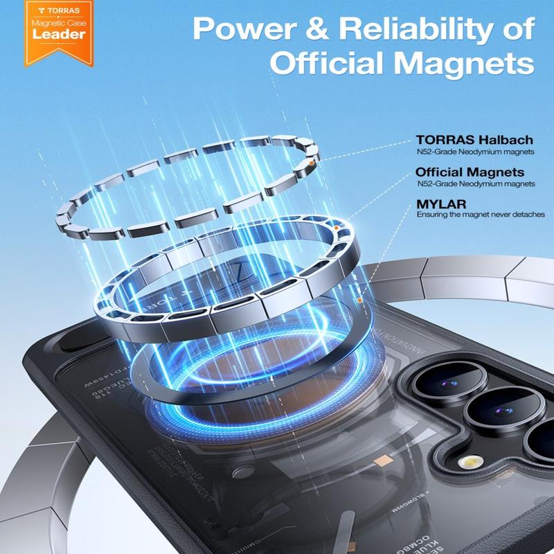 Udstyret med N56-magneter og MegaMag-Boosted-teknologi giver etuiet op til 1,5× stærkere magnetisk fastgørelse sammenlignet med standardetuier. Det forbindes sikkert med magnetiske opladere, bilholdere og andet tilbehør, hvilket sikrer stabil justering og pålidelig trådløs opladning uden at fjerne etuiet.