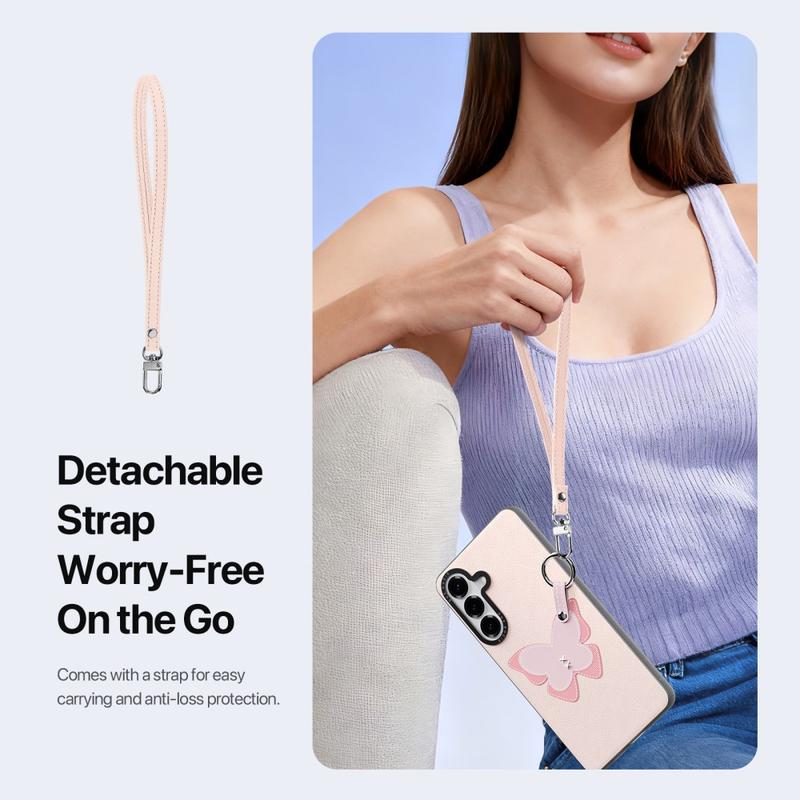 Samsung Galaxy S26 Dux Ducis Luvy cover med fingerring/håndrem - lyserød / sommerfugl