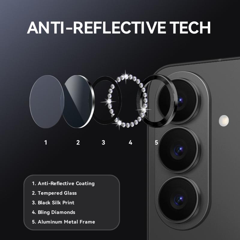 Tilføj glitter og beskyttelse til din Samsung Galaxy S26 med NORTHJO Camera Lens Protector. Den er designet med glitrende rhinsten og præcisionsskåret hærdet glas og beskytter din kameralinse mod ridser, støv og stød, samtidig med at den giver et strejf af elegance og luksus.