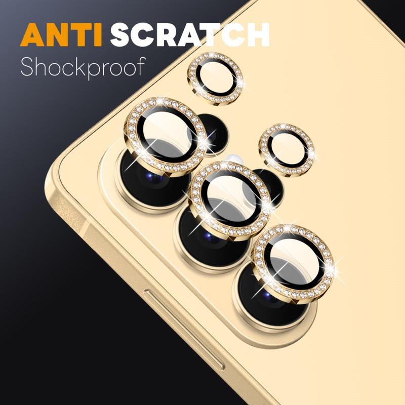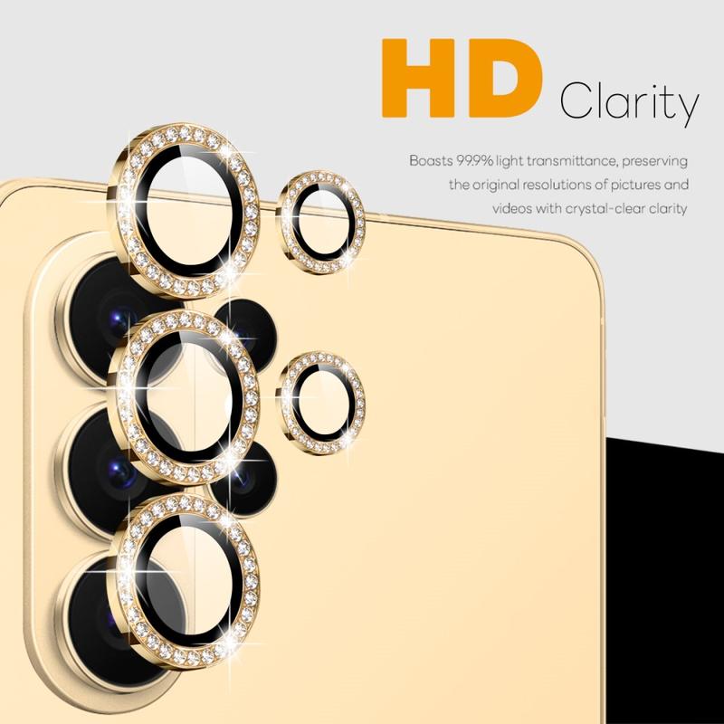 Tilføj glitter og beskyttelse til din Samsung Galaxy S26 Ultra med NORTHJO Camera Lens Protector. Den er designet med glitrende rhinsten og præcisionsskåret hærdet glas og beskytter din kameralinse mod ridser, støv og stød, samtidig med at den giver et strejf af elegance og luksus.