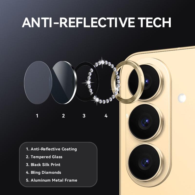 Tilføj glitter og beskyttelse til din Samsung Galaxy S26+ med NORTHJO Camera Lens Protector. Den er designet med glitrende rhinsten og præcisionsskåret hærdet glas og beskytter din kameralinse mod ridser, støv og stød, samtidig med at den giver et strejf af elegance og luksus.