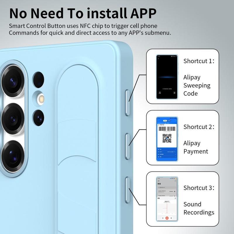 Udstyret med tre intelligente NFC-aktiverede knapper giver dette smarte hybridcover dig mulighed for at oprette hurtig adgang til apps som kamera, lommelygte eller skærmbillede med et enkelt tryk. Ingen opladning, ingen ekstra apps - bare enkel, øjeblikkelig funktionalitet.