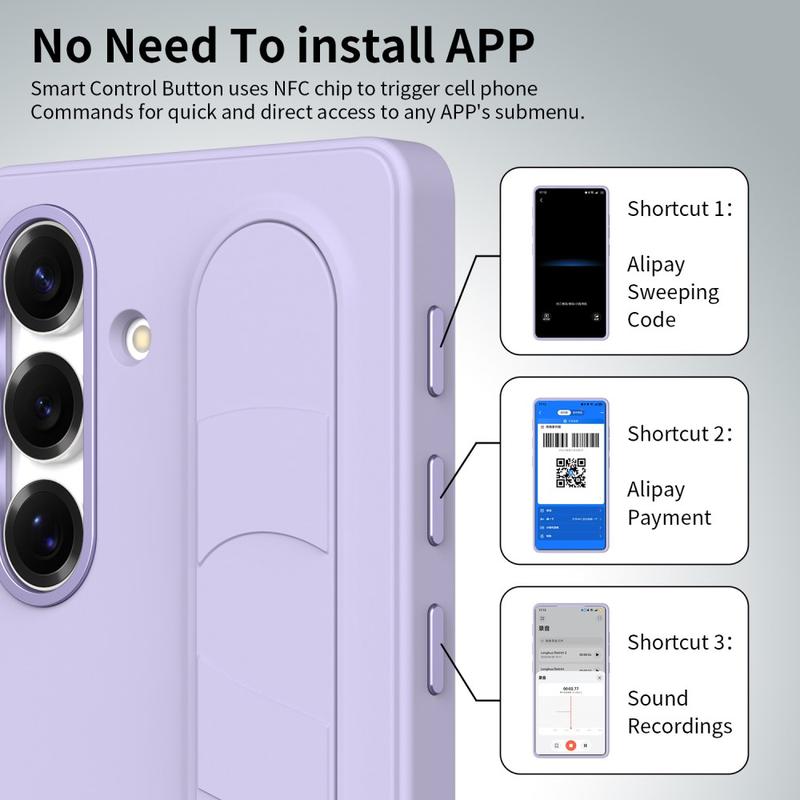 Dette smarte hybrid-etui er udstyret med tre intelligente NFC-aktiverede knapper, så du kan få hurtig adgang til apps som kamera, lommelygte eller skærmbillede med et enkelt tryk. Ingen opladning, ingen ekstra apps - bare enkel, øjeblikkelig funktionalitet.