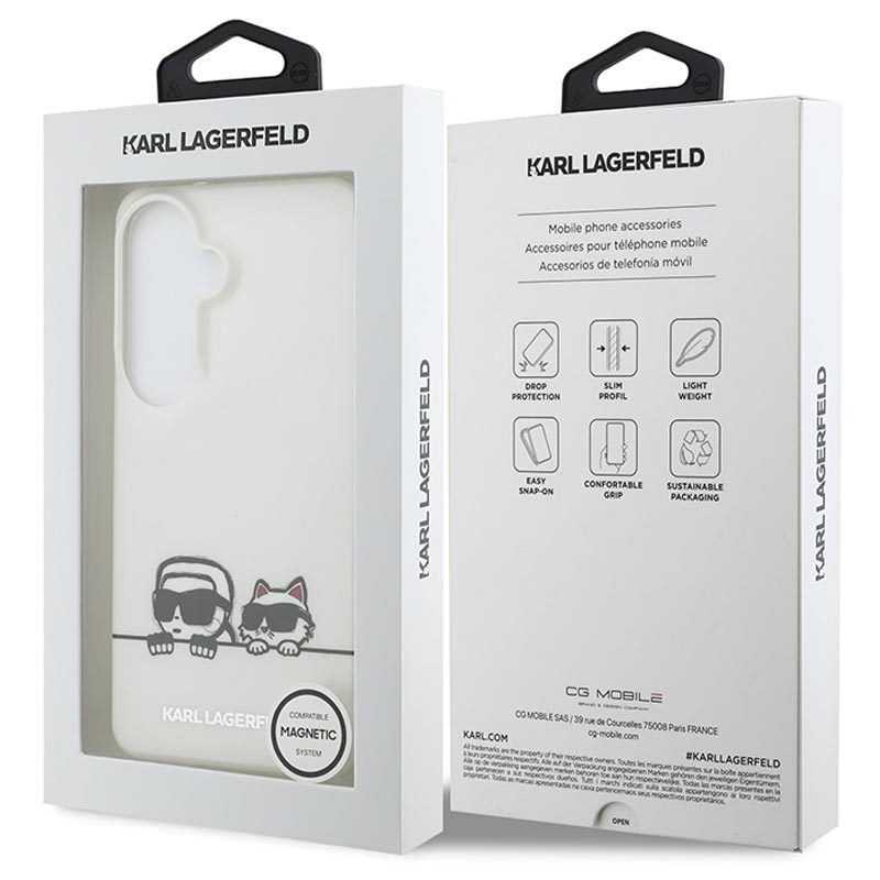 Samsung Galaxy S26+ Karl Lagerfeld IML Karl&Choupette; Peekaboo Logo magnetisk cover - hvid