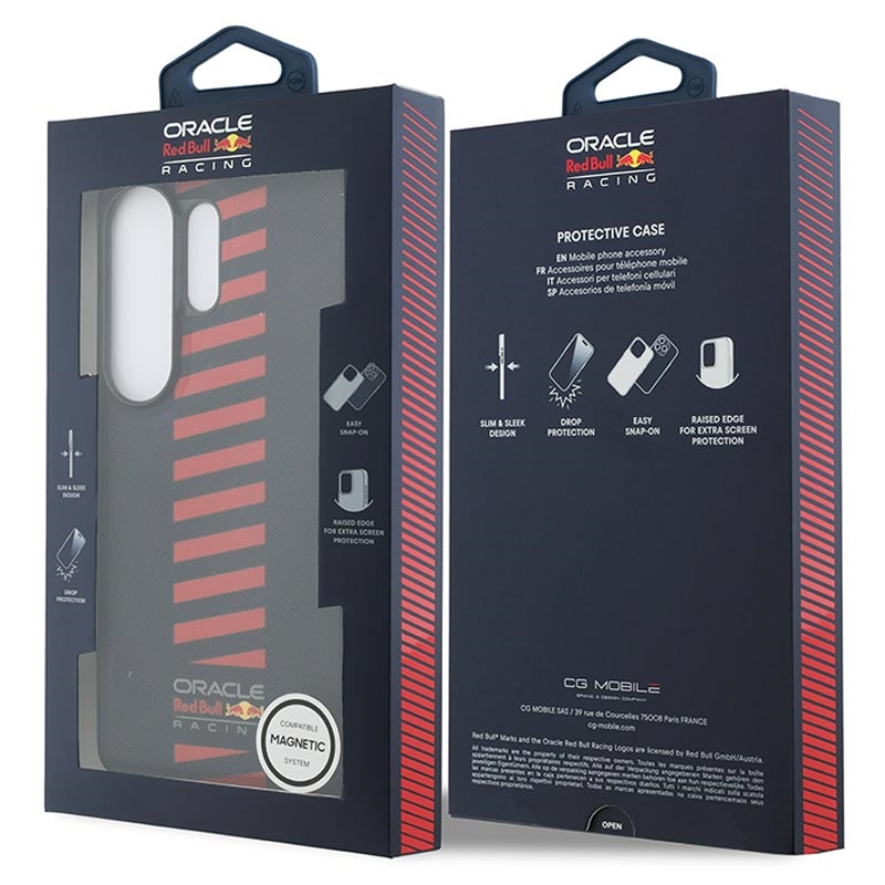 Oplev motorsportsinspireret design med Oracle Red Bull Racing Meshed Powerbar magnetisk cover til Samsung Galaxy S26 Ultra. Dette premium-bagcover kombinerer racingæstetik med praktisk beskyttelse til hverdagsbrug og har et karakteristisk Meshed Powerbar-design og autentisk Oracle Red Bull Racing-branding. Det er fremstillet af en holdbar PC-kerne, fleksibel TPU-ramme og stilfuld polyuretanoverflade og giver et sikkert greb, slankt profil og pålidelig beskyttelse til daglig brug.