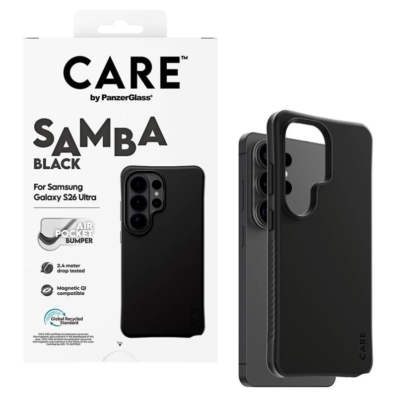 Care by PanzerGlass Samba magnetisk cover til Samsung Galaxy S26 Ultra - 100 % genanvendt TPU, selvhelende, testet til fald fra 2,4 m, Qi-kompatibelt