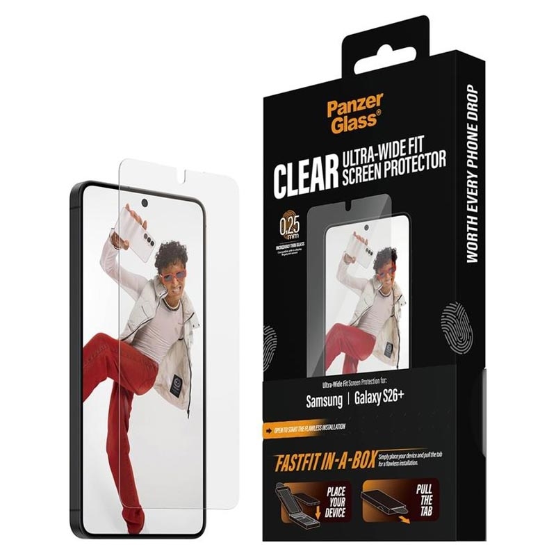 Samsung Galaxy S26+ PanzerGlass Ultra-Wide Fit m. FastFit In-A-Box Skærmbeskyttelse Hærdet Glas - 9H - Klar