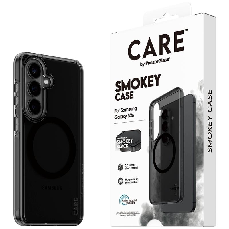 Care by PanzerGlass Urban Explorer Smokey magnetisk cover til Samsung Galaxy S26 - 100 % genanvendt plast, testet til fald fra 3,6 m, garanti mod gulning, forbedret kamerabeskyttelse