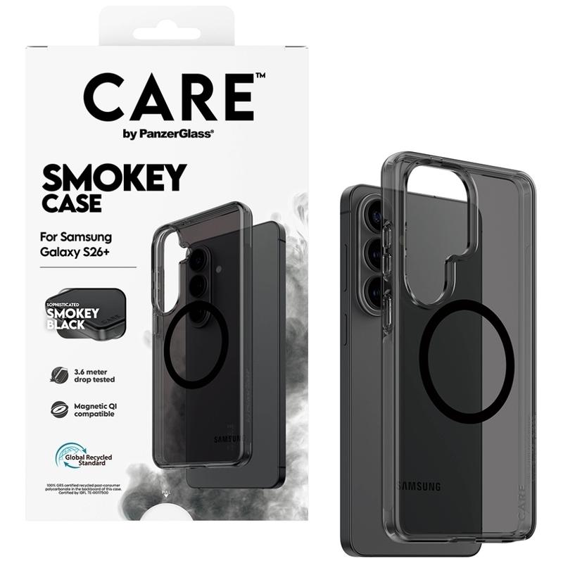 Care by PanzerGlass Urban Explorer Smokey magnetisk cover til Samsung Galaxy S26+ - 100 % genanvendt plast, testet til fald fra 3,6 m, garanti mod gulning, forbedret kamerabeskyttelse