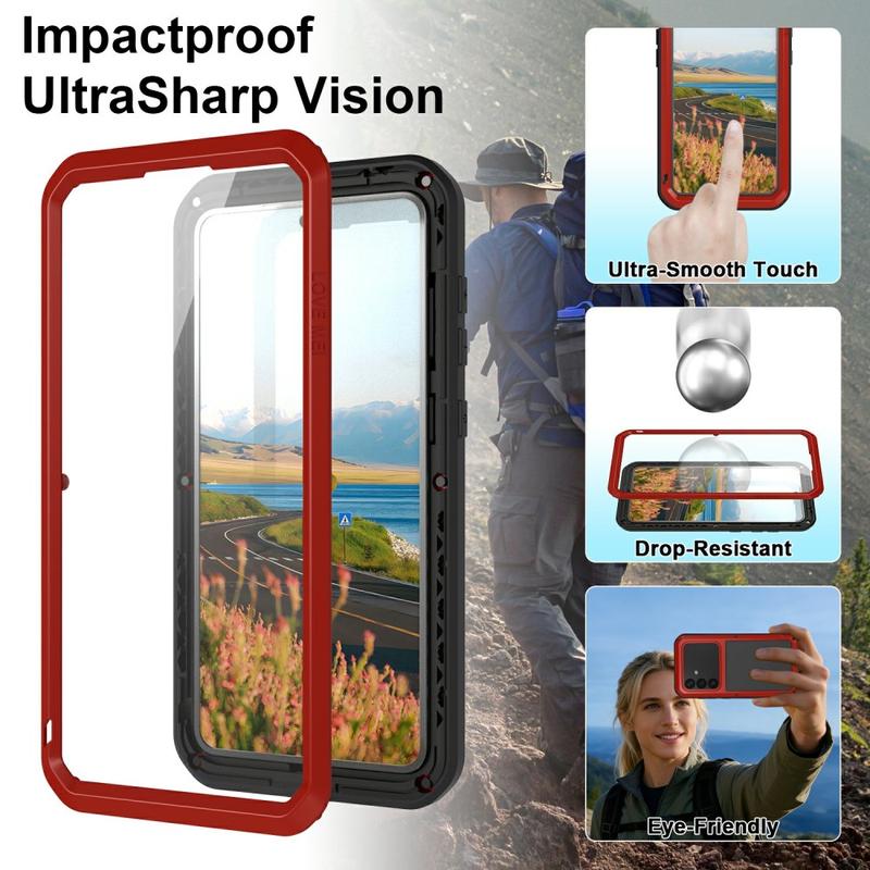 Love Mei-serien er inspireret af militær- og industriteknik og bruger flerlagsbeskyttelse med metalrammer og silikonedæmpning - en struktur, der kan modstå fald på over 2 meter og samtidig bevare touchskærmens følsomhed.