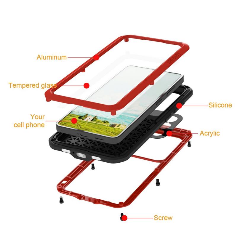 - Skruelåsdesign - Forstærket med sikre skruelåshjørner, der forsegler etuiet, så din telefon forbliver beskyttet under fald, stød og hårdhændet håndtering.