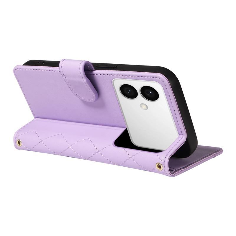 Beskyt din Samsung Galaxy S26 Edge med denne luksuriøse, quiltede pung. Den er fremstillet af TPU-materiale belagt med PU-læder, hvilket gør den ridsefast og fingeraftryksbestandig, så din telefon ser stilfuld og elegant ud. Syningen danner et rombeformet gittermønster, der giver coveret et moderne og smukt touch. Den hævede kant på kameraet og skærmen giver effektiv beskyttelse mod ridser, mens de præcise udskæringer giver fuld adgang til alle knapper, porte og andre funktioner. Pungdesignet giver mulighed for nem opbevaring af vigtige kort og kontanter. Med ekstra beskyttelse mod ridser, stød, fald og daglige skader leveres dette cover også med en skulderrem og en håndledsrem for ekstra bekvemmelighed.